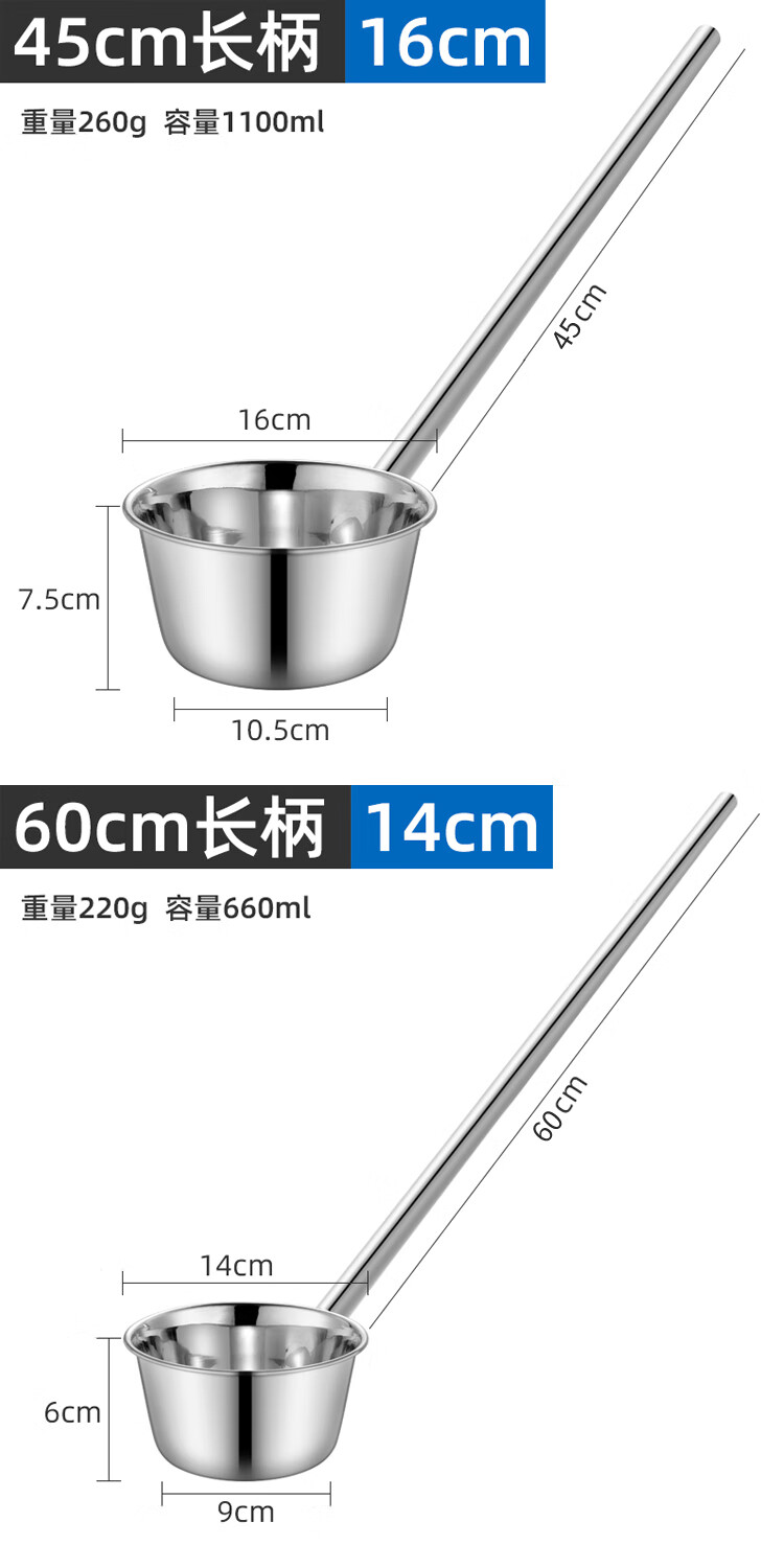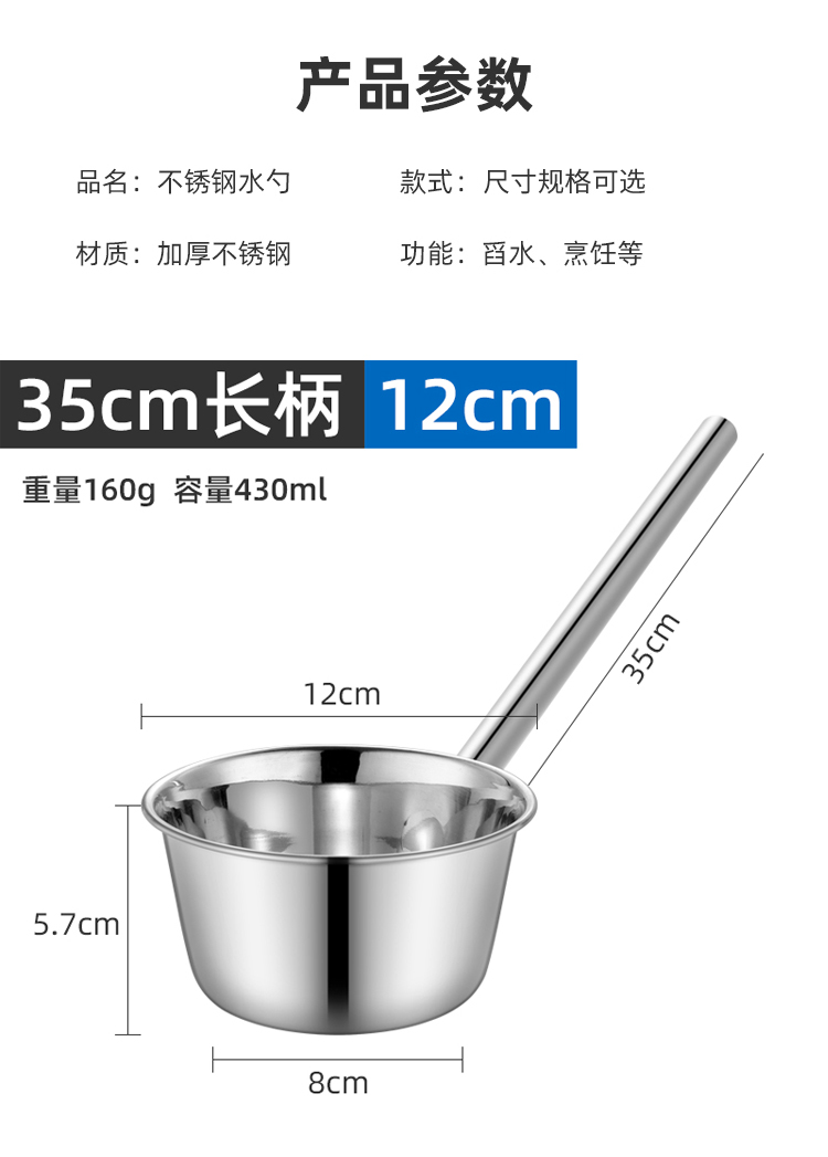 兰诗(LAUTEE)不锈钢水舀 35CM长柄 口径12CM LE767