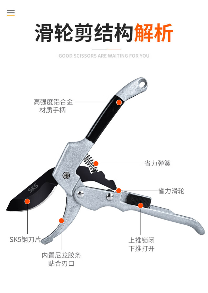 兰诗(LAUTEE) 园林剪刀 白金色 LE860