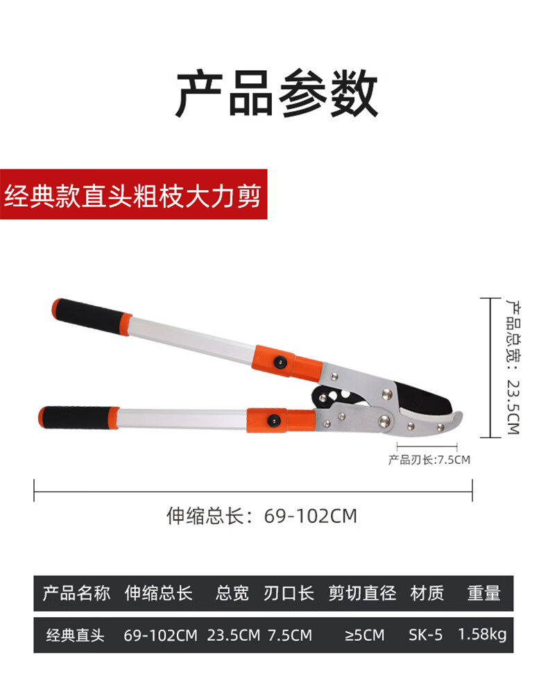 兰诗(LAUTEE) 伸缩直头大力剪 橙色 LE861