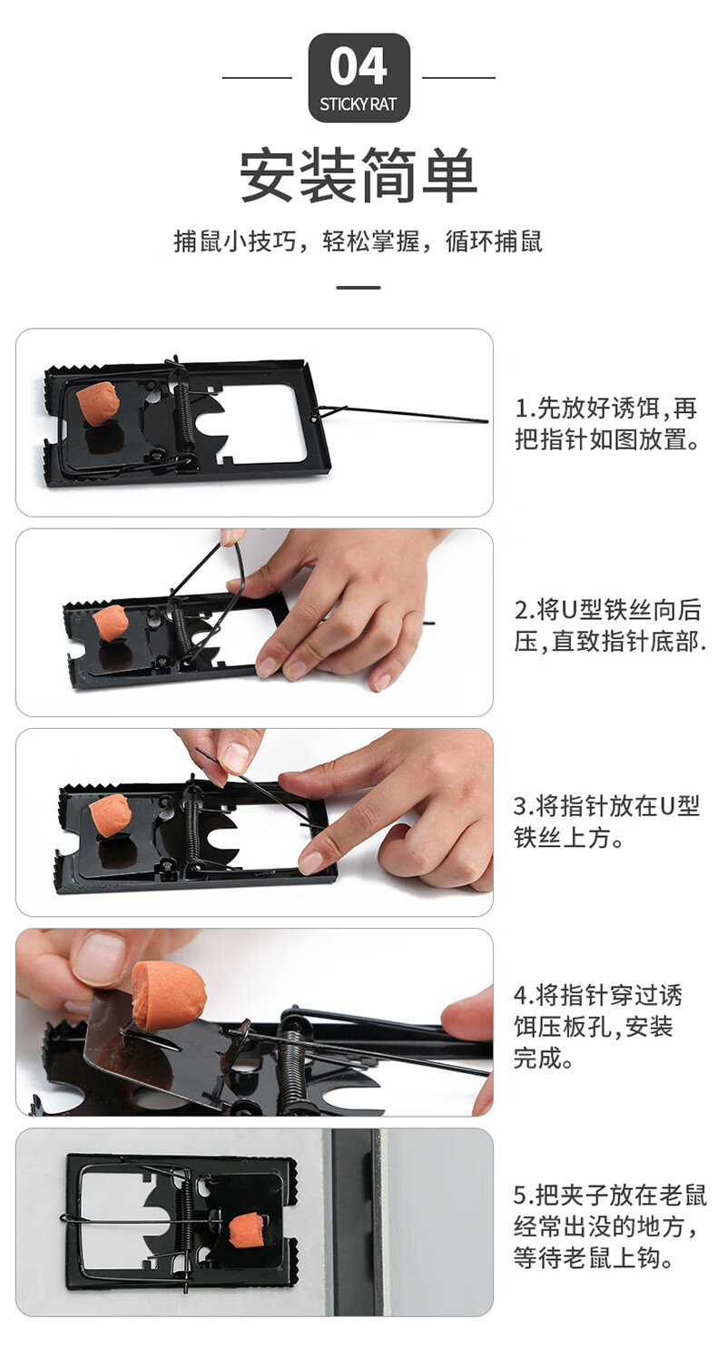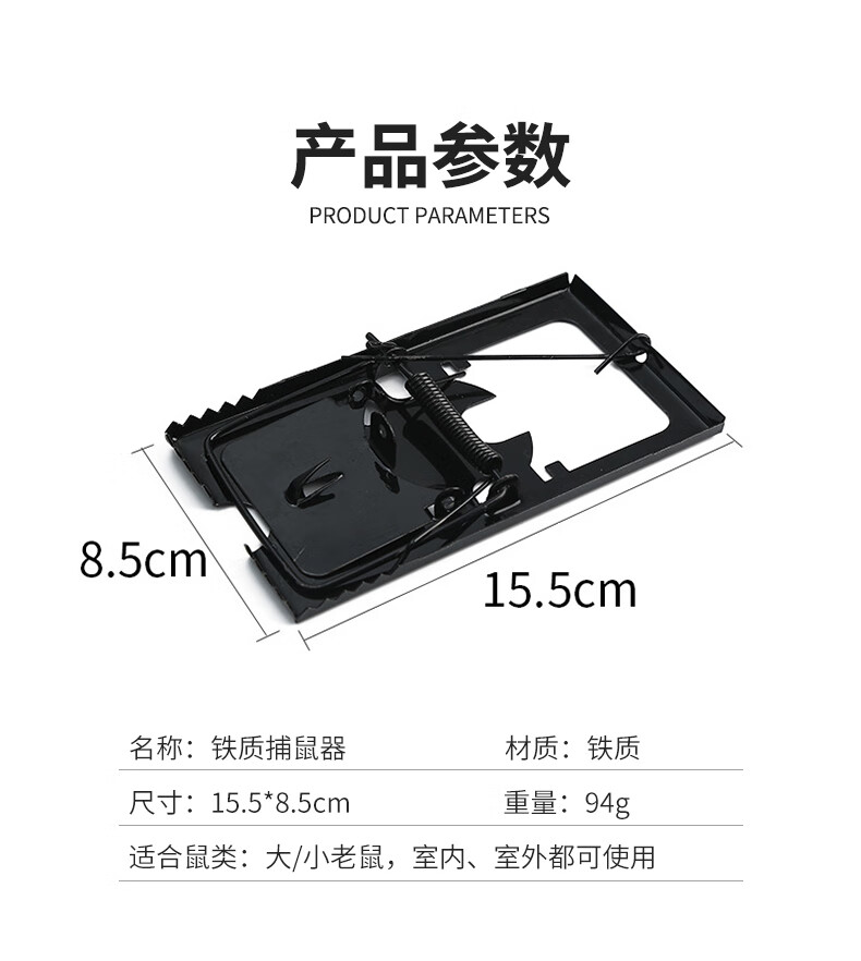 兰诗(LAUTEE) 老鼠夹 铁质 黑色中号 5个装 LE956