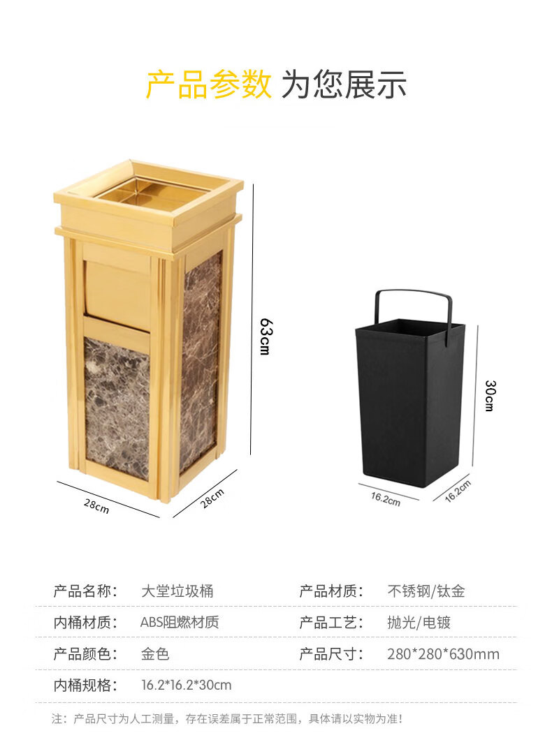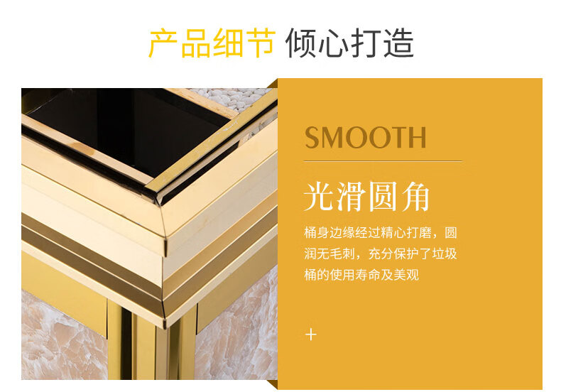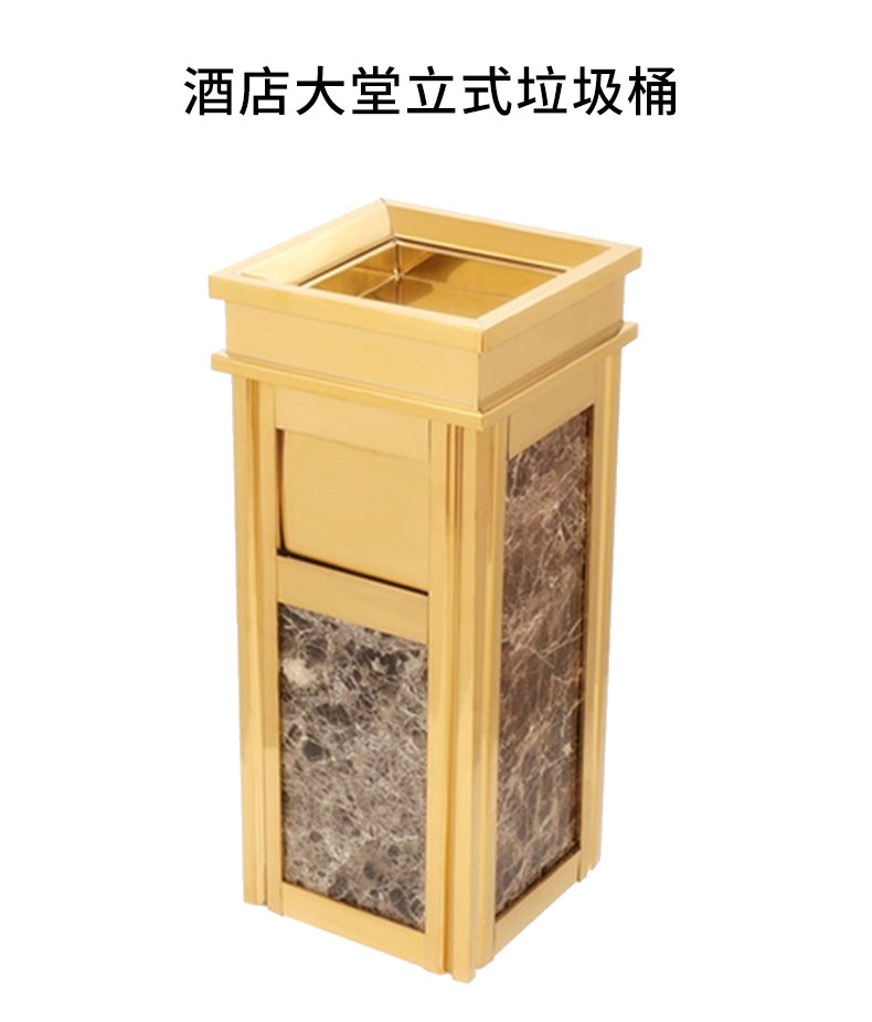 兰诗(LAUTEE) 酒店大堂垃圾桶 四菱角钛金咖啡纹/侧开 YM618