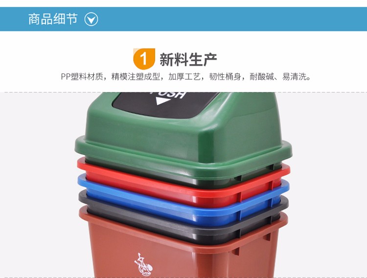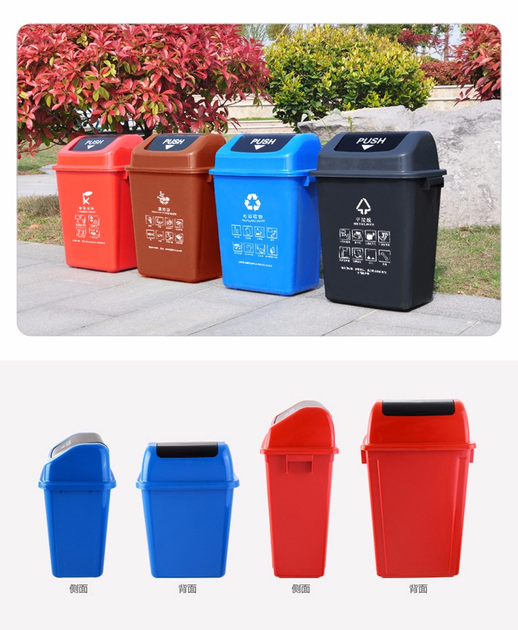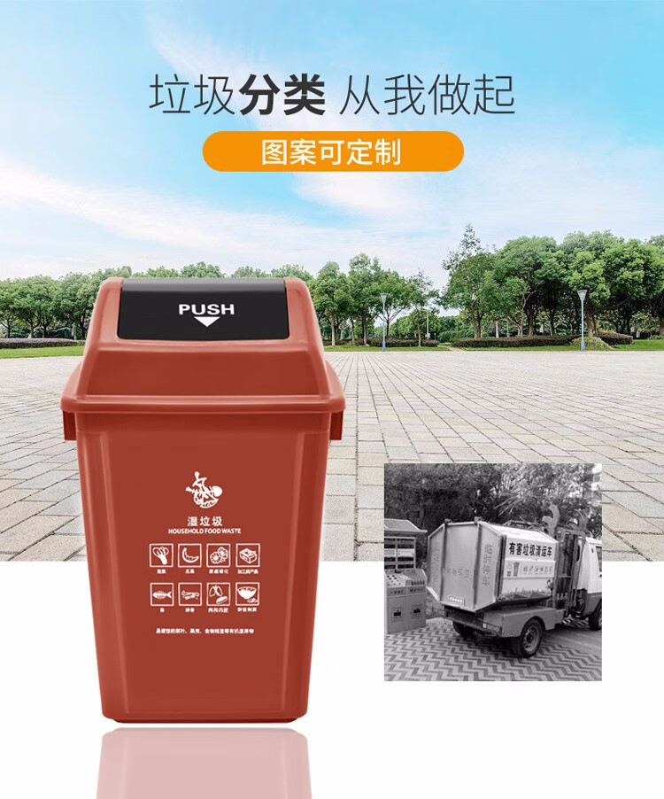 兰诗(LAUTEE) 摇盖垃圾桶 60L红色有害垃圾 YM180