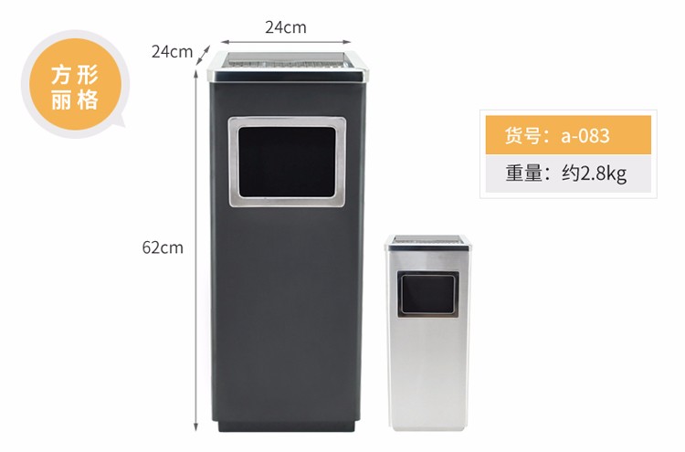 兰诗(LAUTEE) 丽格垃圾桶 烟灰桶 长形砂钢 YM397