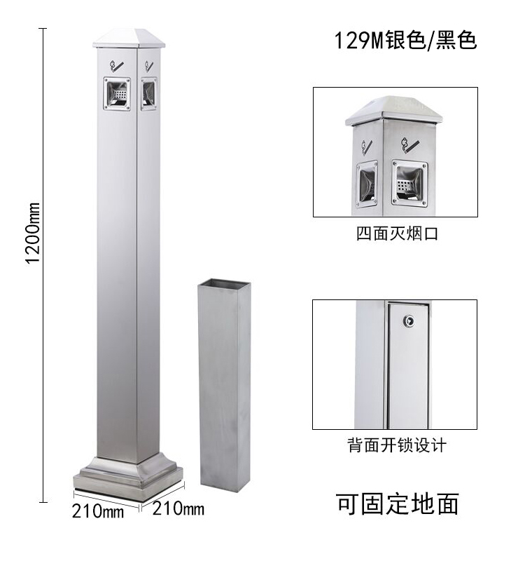 兰诗(LAUTEE) 烟灰柱 111A银色可固定地面 YM451