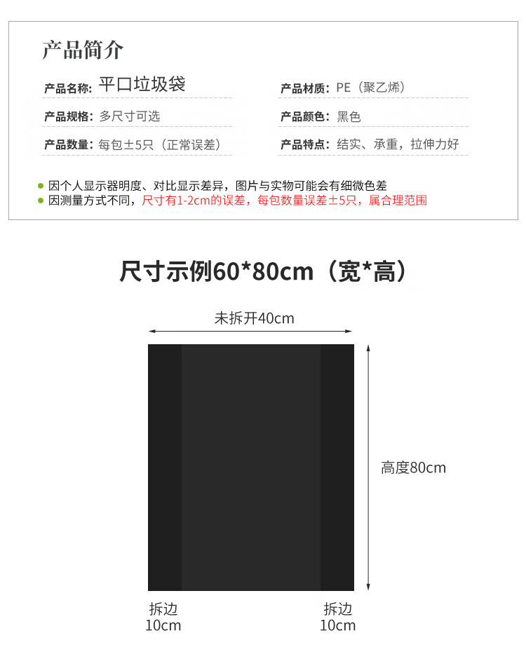 兰诗(LAUTEE) 黑色平口垃圾袋 120*140cm 3.8丝50只装 YM014
