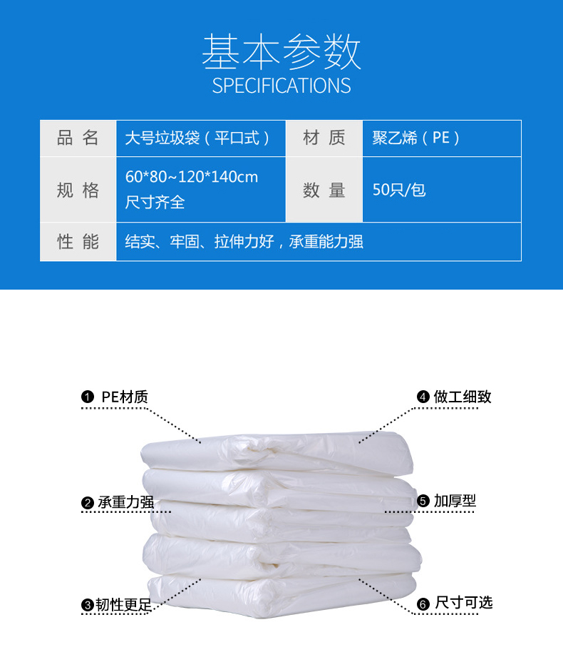 兰诗(LAUTEE) 白色平口垃圾袋 135*150cm 3丝50只装 YM025
