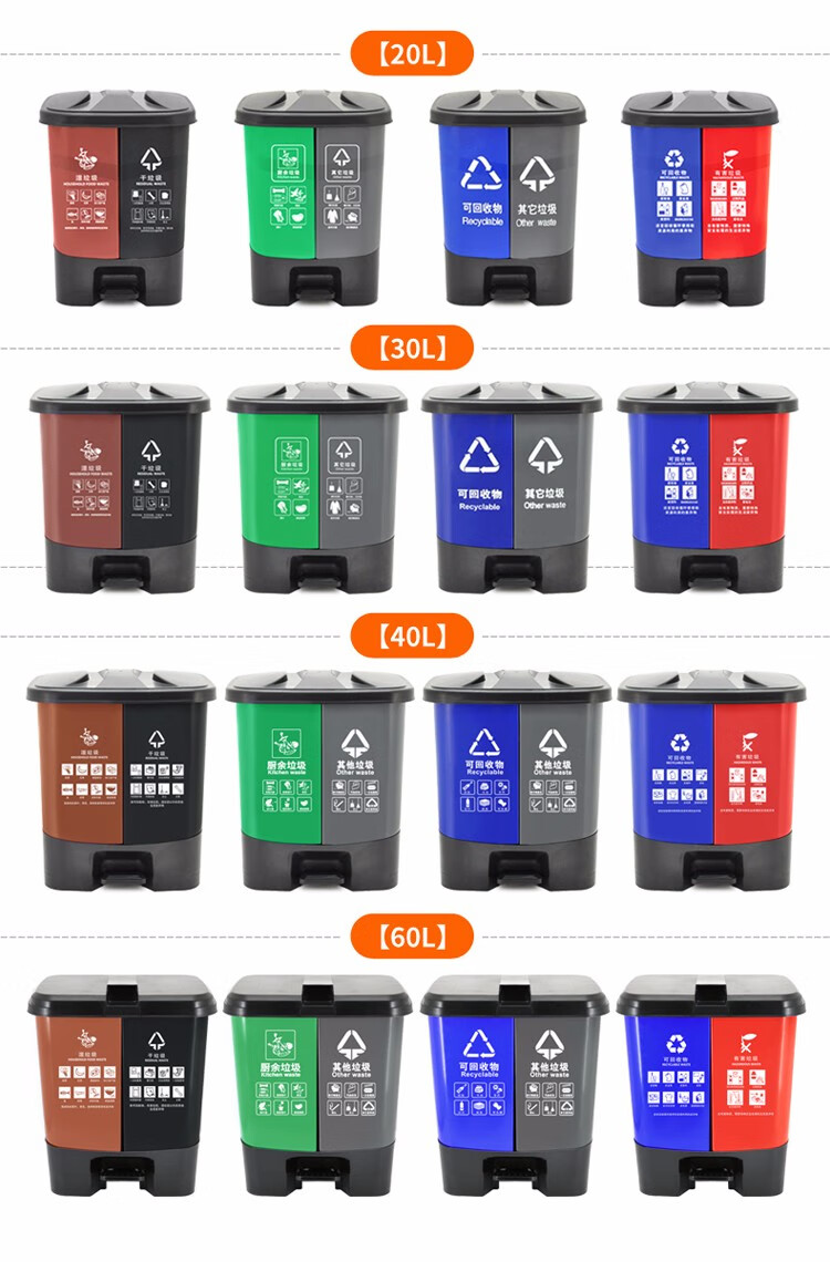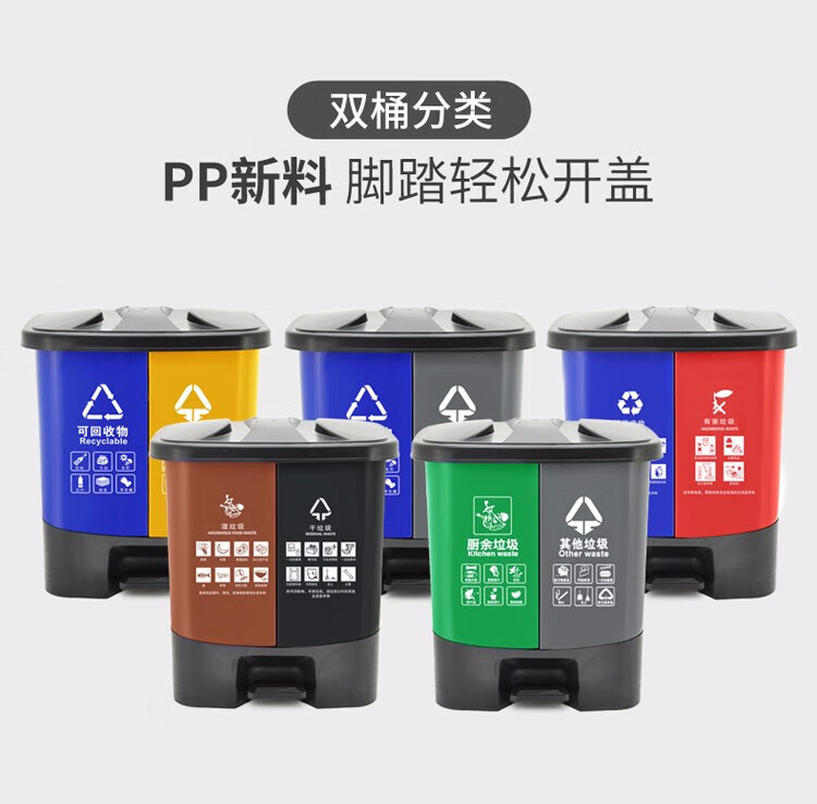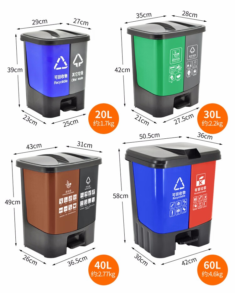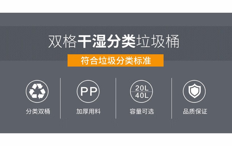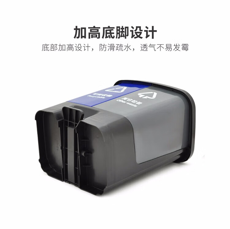 兰诗(LAUTEE) 脚踏双格垃圾桶 40L蓝灰 YM302