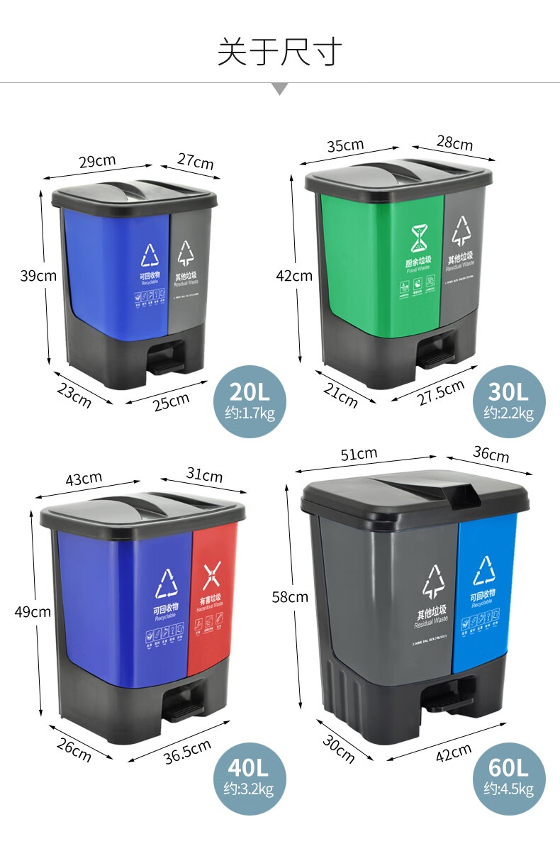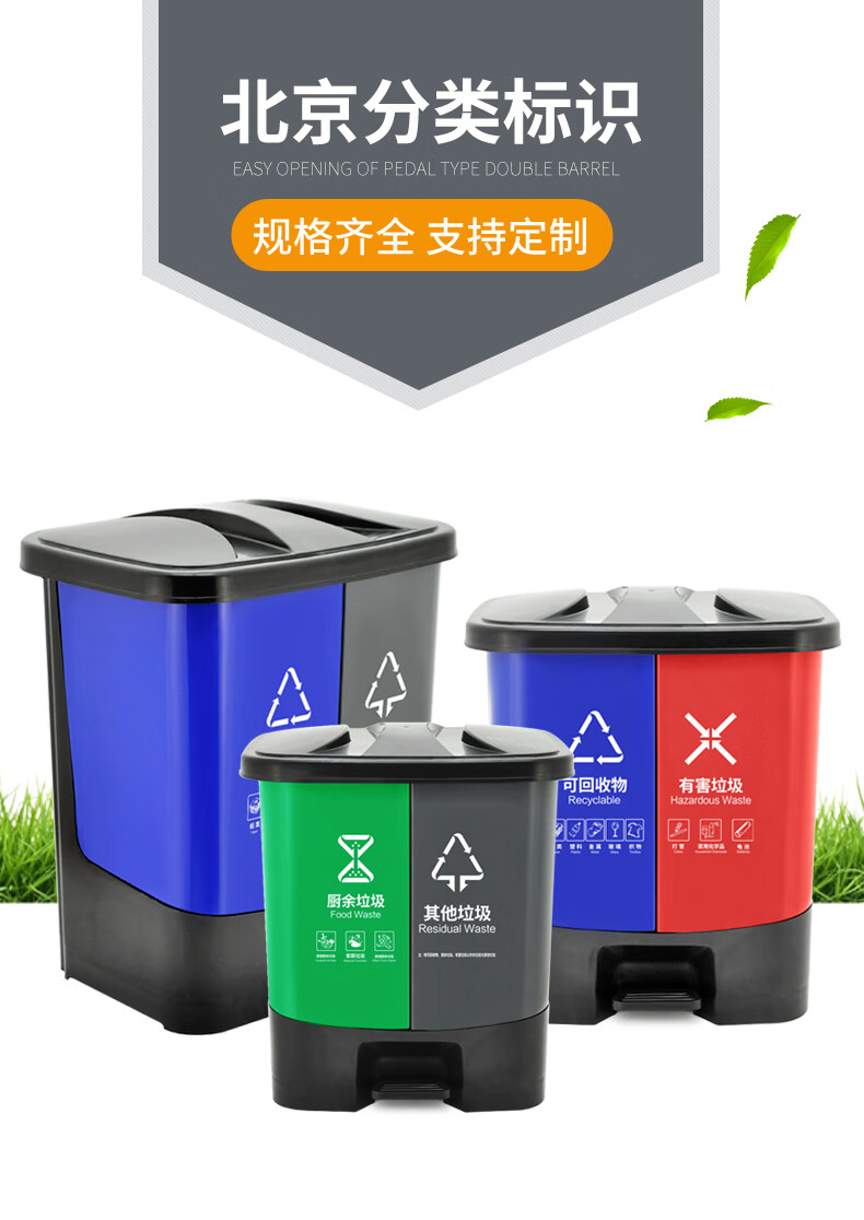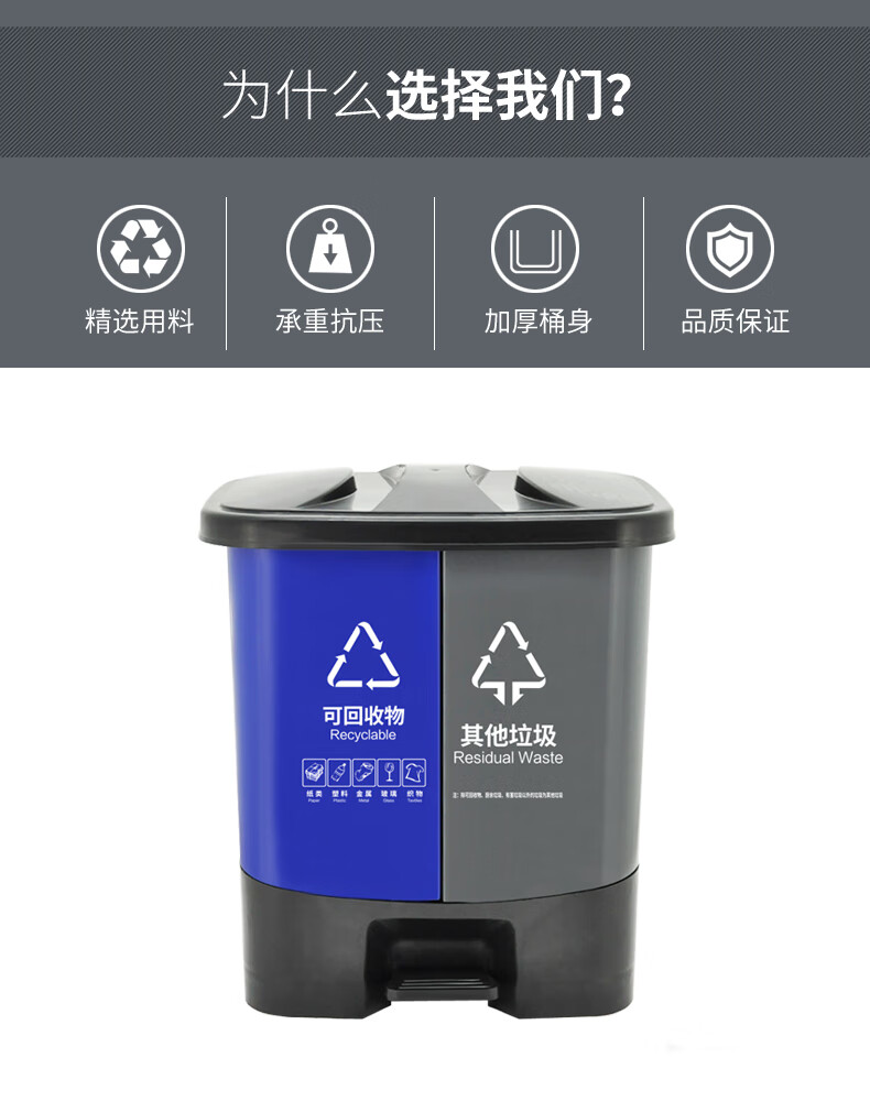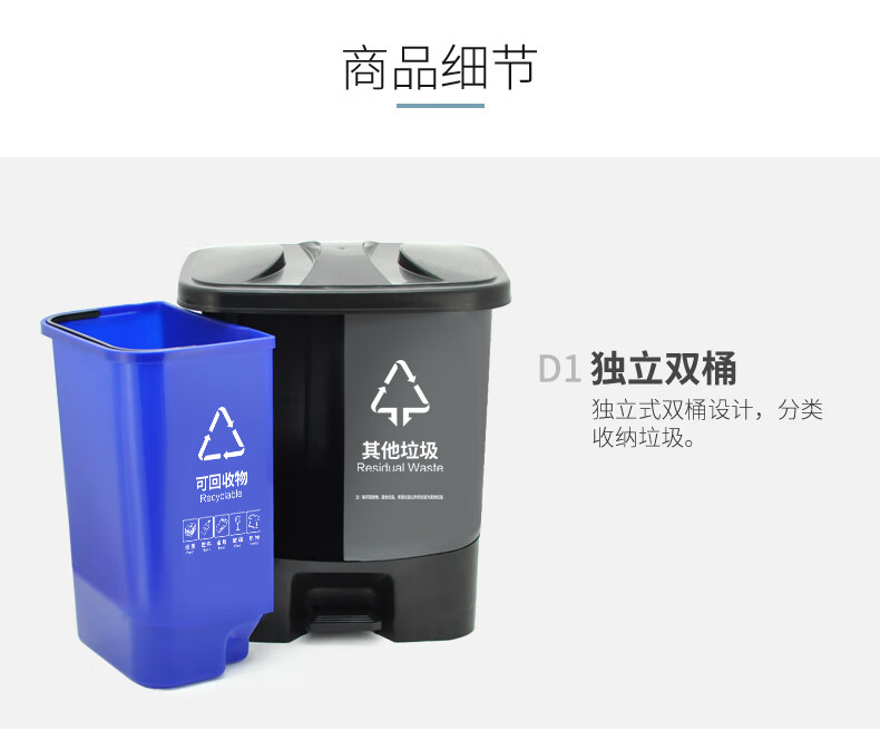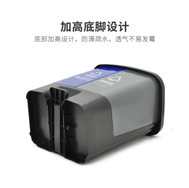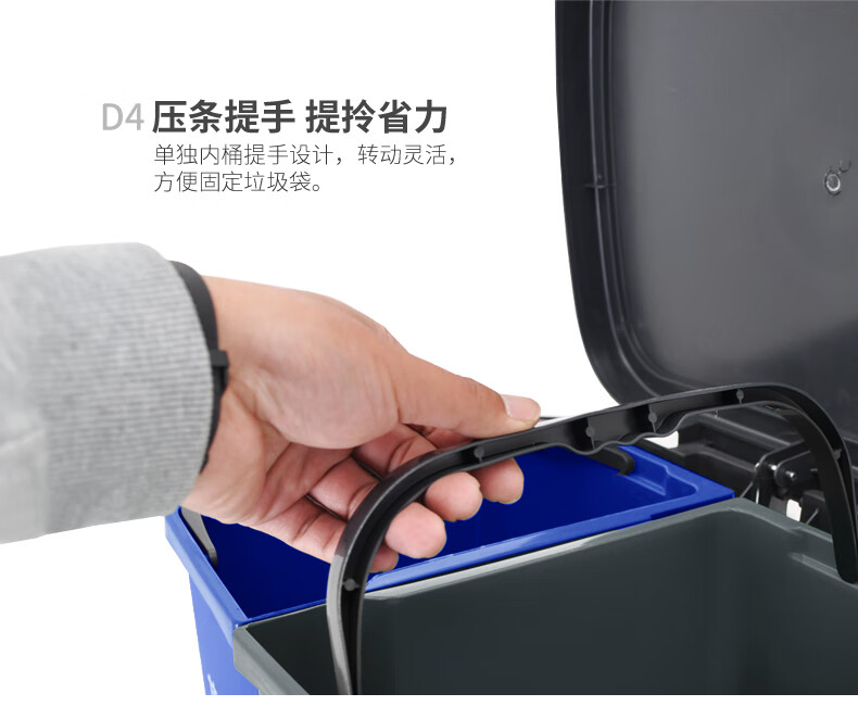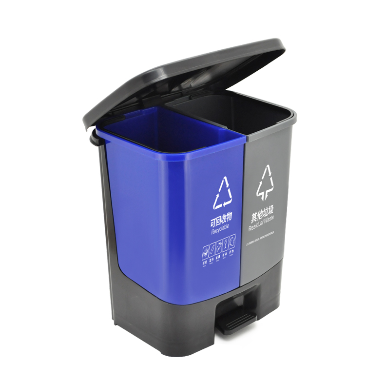 兰诗(LAUTEE) 脚踏双格垃圾桶 40L蓝灰 新国标 YM306